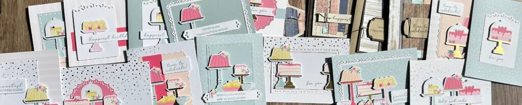 Create 15 cards using the Birthday Fancy Kit. Three are cards I designed with the extra product. You will also make 2 each of 4 designs using the stamp set from the kit and Country Woods designer series paper. That is a total of 23 cards plus you will have a small birthday greeting stamp set, and plenty of designer series paper and linen threat to make many more cards.